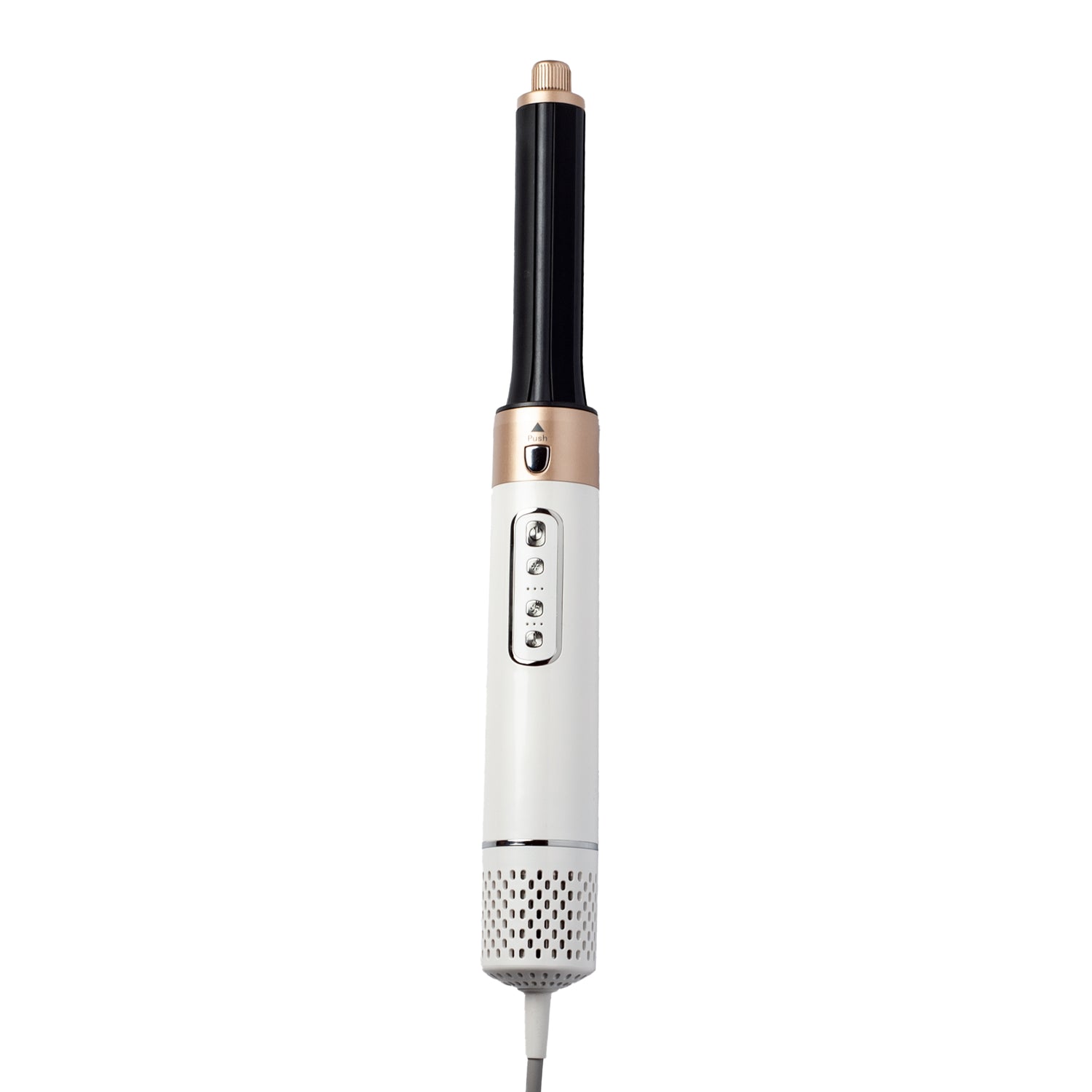 Crea hermosos rulos/ondas en segundos. Este accesorio puede rizar hacia izquierda o derecha girando la parte superior. Utiliza la fuerza de soplado para envolver automáticamente el cabello alrededor del barril ondulador proporcionando rizos perfectos.